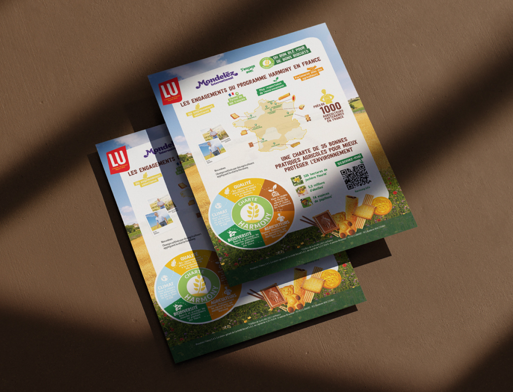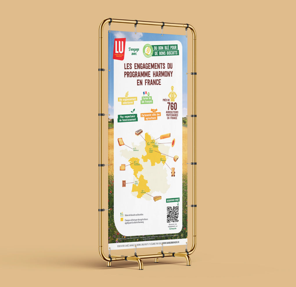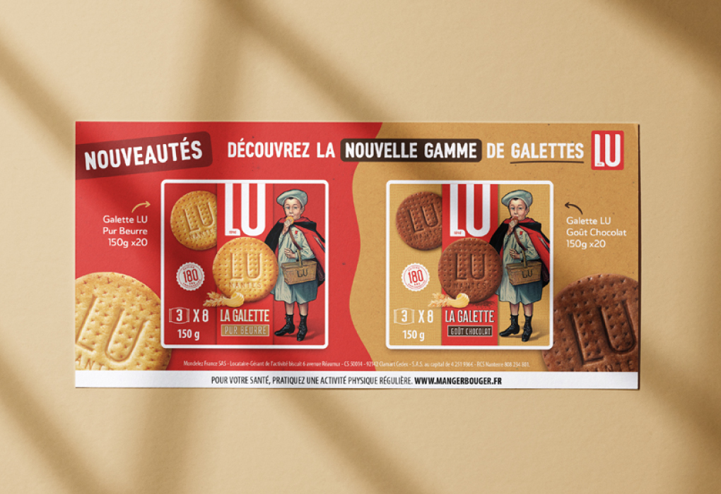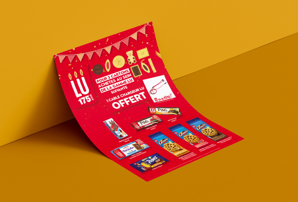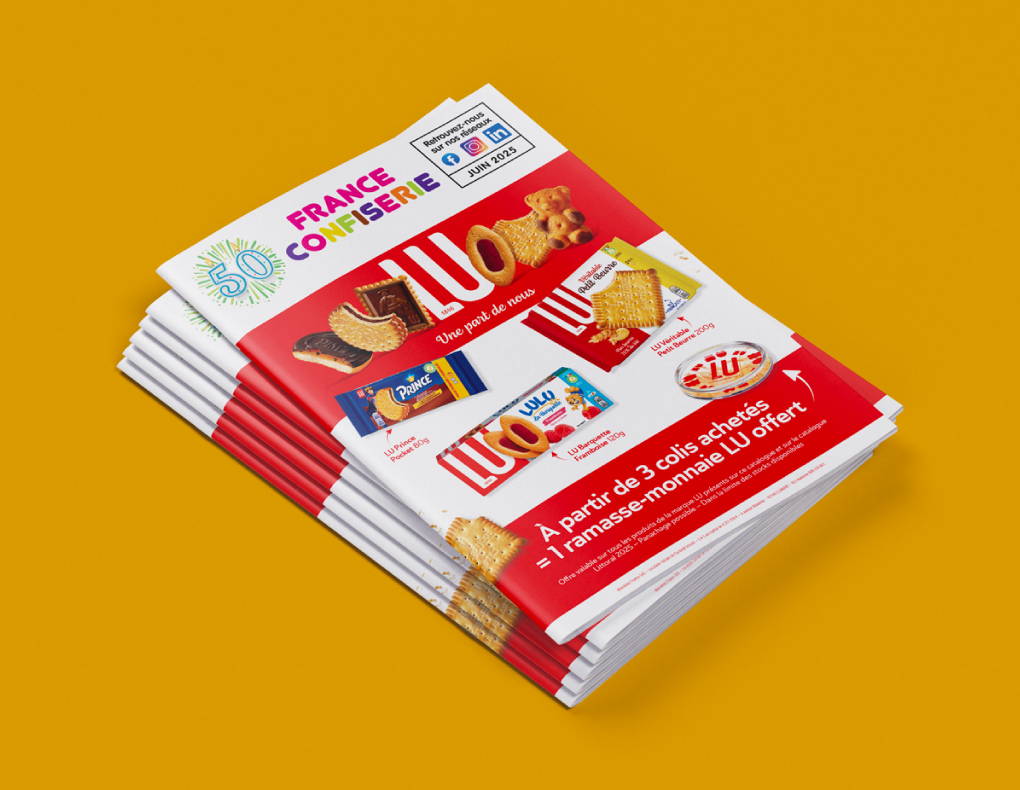 Nous accompagnons la marque LU dans le déploiement de sa communication à travers une approche globale et cohérente. Notre collaboration a couvert la création de supports print (affiches, annonces, leaflets), la conception de dispositifs dédiés aux salons professionnels, ainsi que le développement de PLV afin de maximiser l’impact et la visibilité en point de vente.
